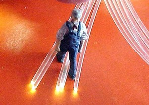 Fiber Optic for Structure or scenic lighting, Military Models, Aircraft, Autos. .060 inches or 1.524 mm in diameter. 2 strands each over 4 feet (48 inches) long (1219.2mm) or over 8 (2.44M) total feet of .060 diameter first grade optic fiber. 1.52 mm diameter. ACC to an LED or use other light source; run through wall or floor and light signs, rooms, signals, car headlights, or anything else you might imagine. Can be combined for larger light sources or effects. These long fibers let you get into hard places and allow long runs. Limited supply, don't miss out. .060 is aproximately 1/16 inch in diameter and in HO scale about 5 1/2 scale inches in diameter. For example, about the size of an auto headlight, a search light, or large industrial flood light. The HO scale ConCor Goose rail car, both standard and narrow gauge, used this size fiber optic for the headlights. Figure in photo is S Scale (just over 1" tall). Box car is S Scale (Sn3 narrow gauge). NOTE; photos (for reference only) show 6 pcs from short pack, this package has 2 long pieces of fiber not six as shown. Combine with our Heat Shrink and LED offerings for postal savings on shipping. Please check out other fiber optics options listed. Narrow Gauge structures, rolling stock, locomotives, books and other items listed here. Happy to answer questions if I can, just E-Mail.