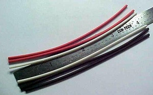 HEAT SHRINK TUBING: small size for modelers and miniaturests. 2 pieces each color, Red/Black/White 1/16 inch in diameter, (total 6 pcs), 2:1 shrink ratio. Cut length each piece aproximatly four (4) inches (10.2 CM). Cut small piece and slide over wire to cover solder joint or splice or wire from led and heat to shrink fit. Use anywhere you need insulation for electrical connections, also good for holding fiber optic to light sources, not recomended for hot lamps or bulbs. Available in other sizes, see other auctions. NEW from the Model Railroad General Store.